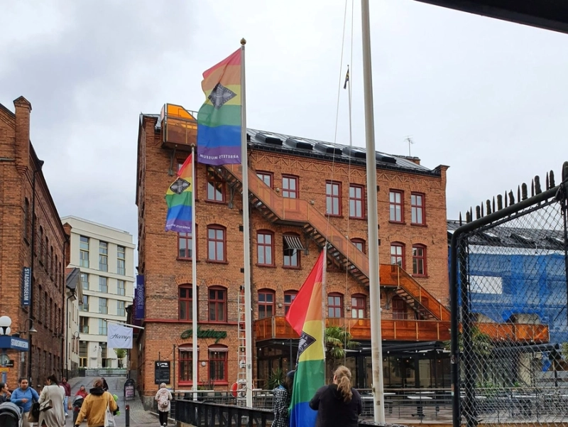VI är igång. Och den stora nyheten i dag är att linorna till flaggorna utanför Arbetets museum kapades i helgen. Den händelsen är ett tydligt exempel på att pride behövs.